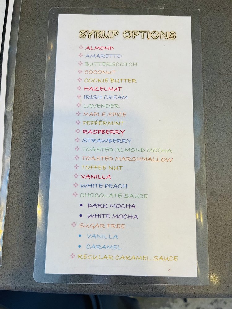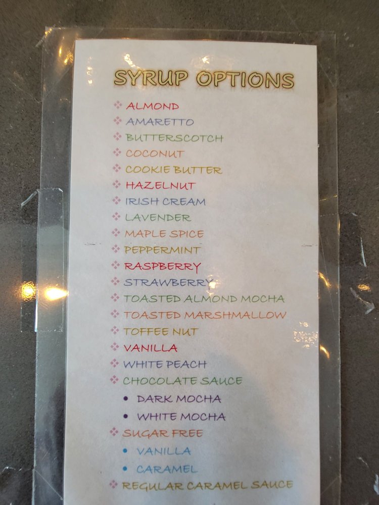 16oz iced drink with 4 shots of espresso over ice. Flavored with dark mocha, milk chocolate, and toffee nut! Topped off with heavy whip cream. Definitely a force to be reckoned with!